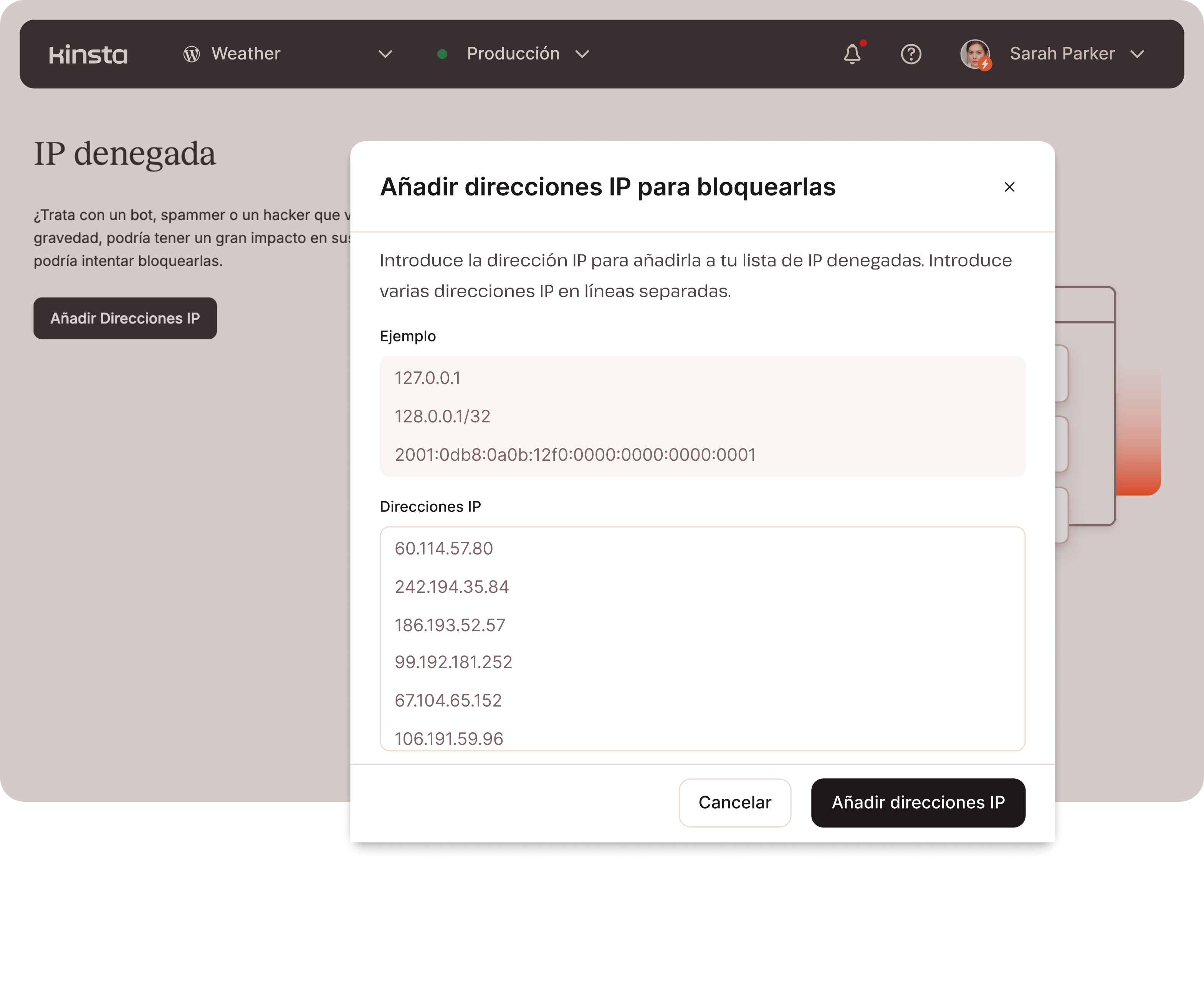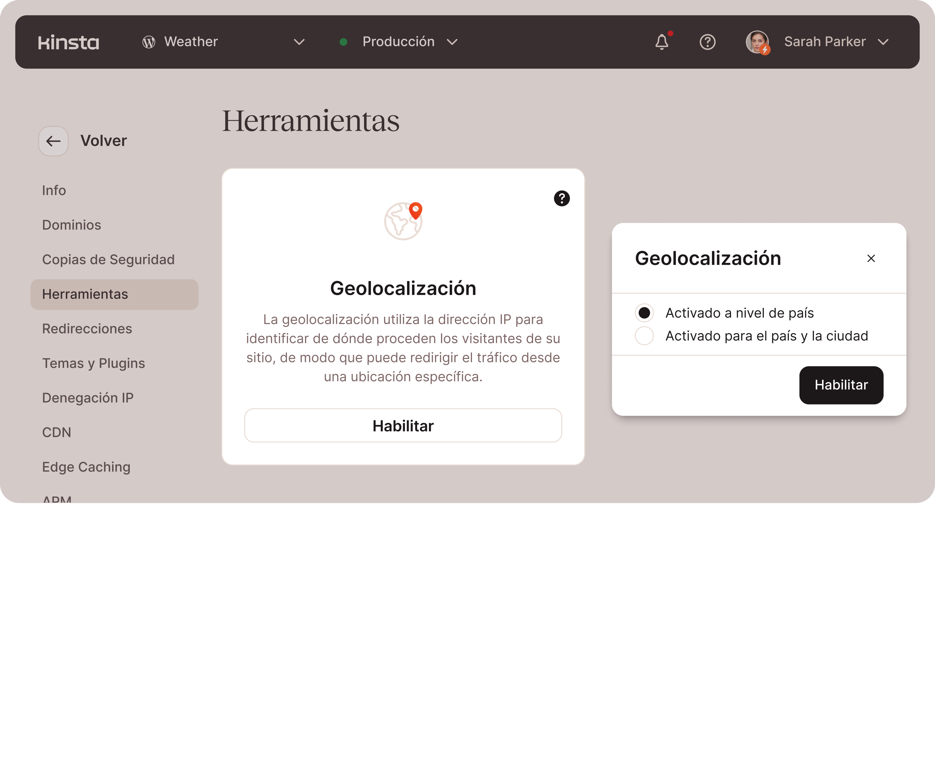 MyKinsta es el centro de control de tu red. Rastrea el tráfico, genera certificados SSL, configura los ajustes de velocidad y seguridad, y mucho más. Consigue todas las herramientas que necesitas en un solo sitio. El panel de control MyKinsta está disponible en español.