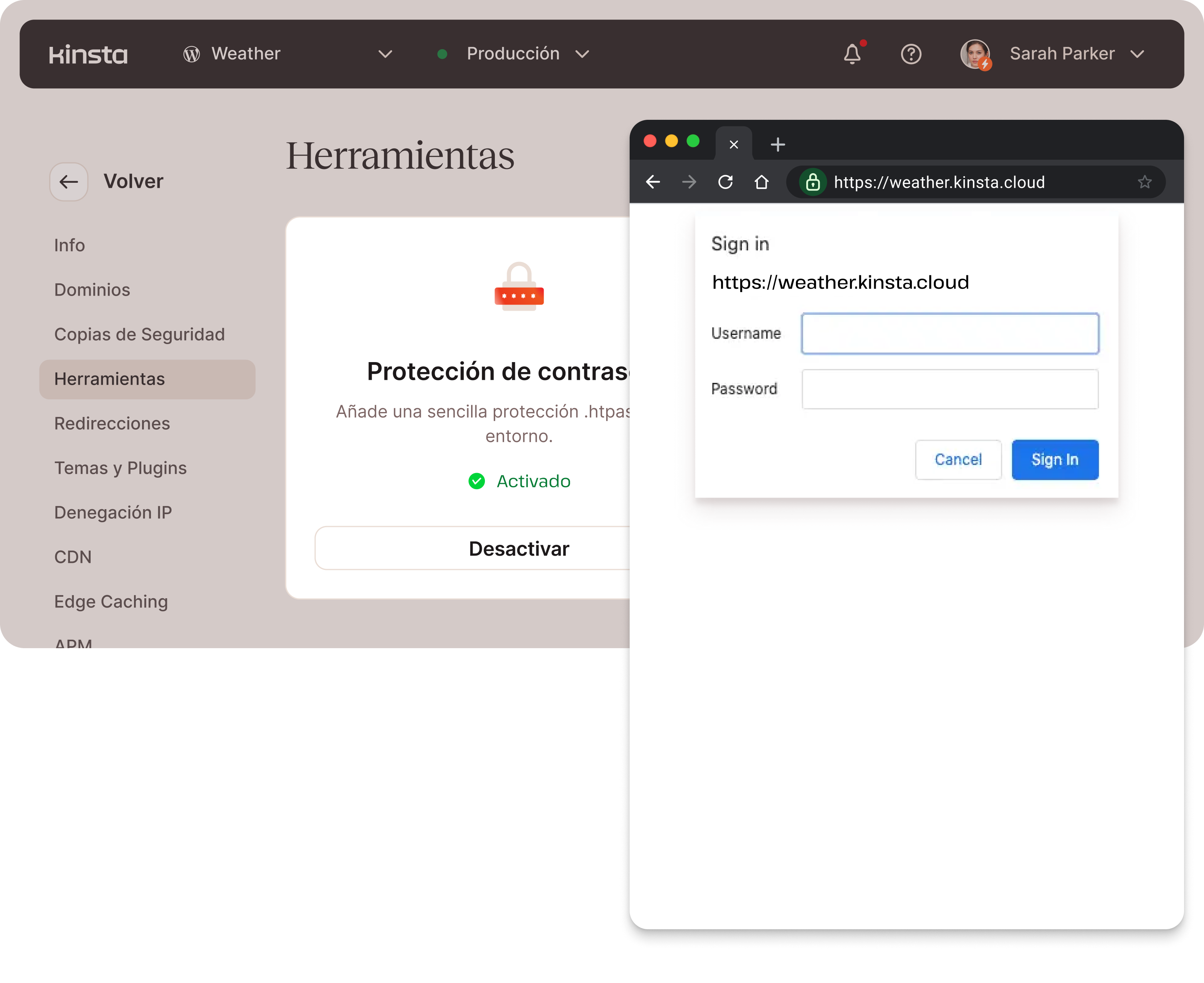 - Activa fácilmente la protección por contraseña (.htpasswd)