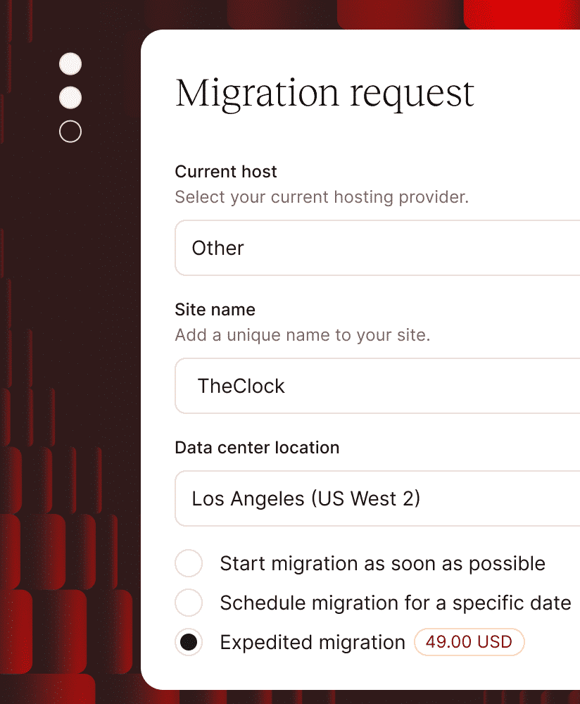 Fast-track your migration request with our Expedited Migration option. Choose it directly in MyKinsta… it’s so convenient!