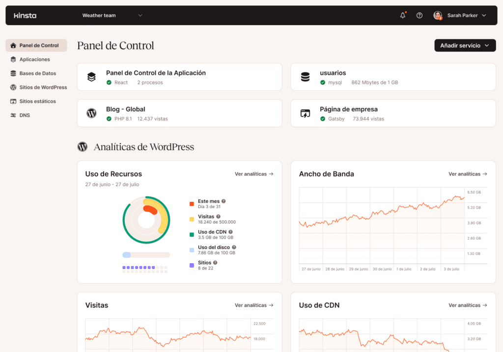 Administra tu sitio fácilmente con MyKinsta y DevKinsta — diseñados para ofrecerte la mejor experiencia en español.