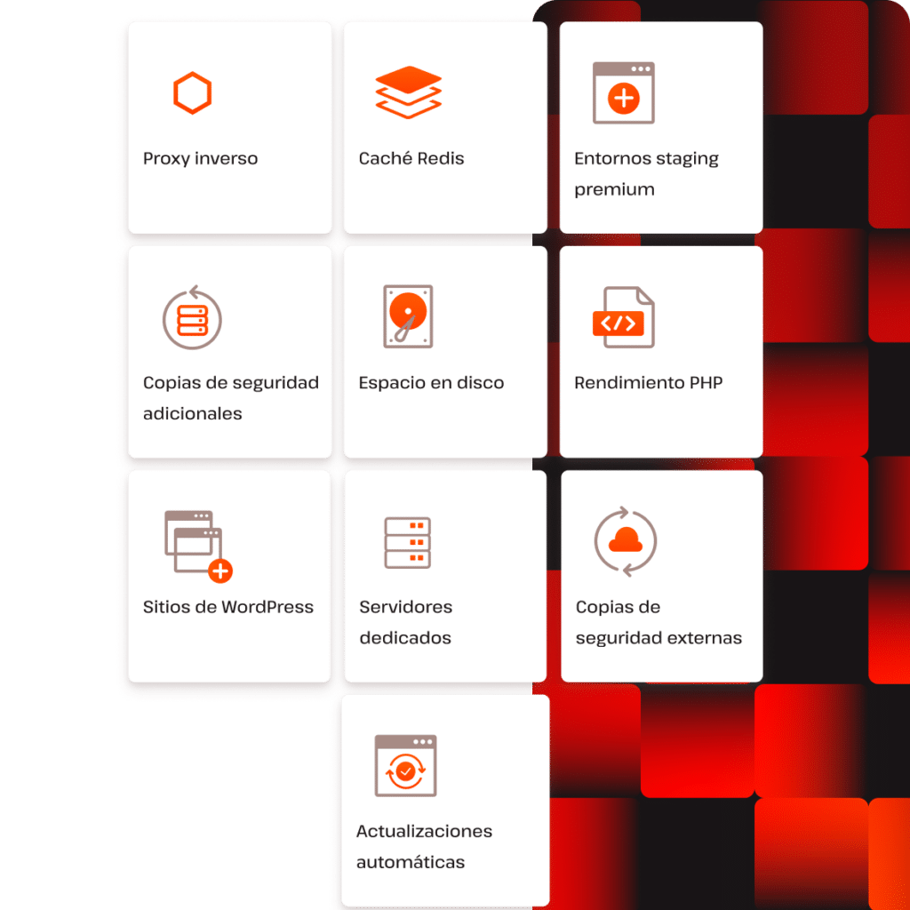 Para sitios grandes con muchos archivos o imágenes, nuestro add-on mensual aumentará el espacio en disco de tu plan.