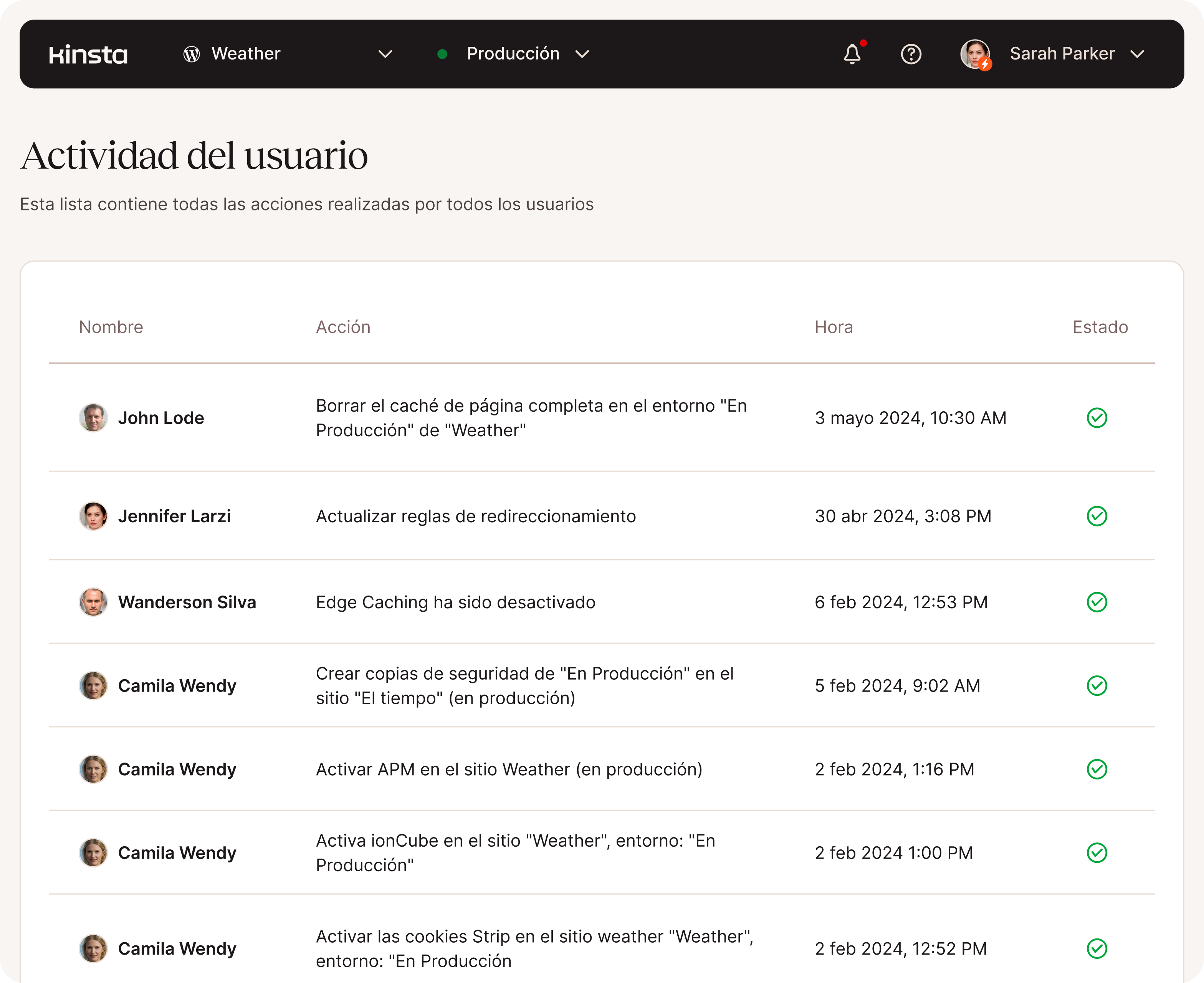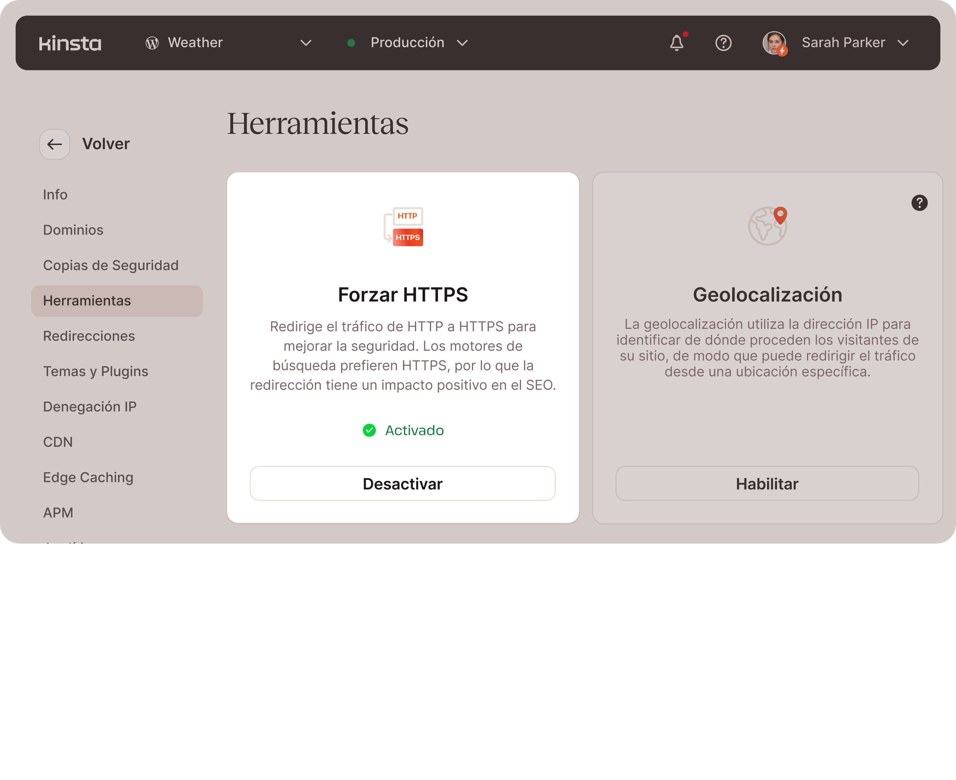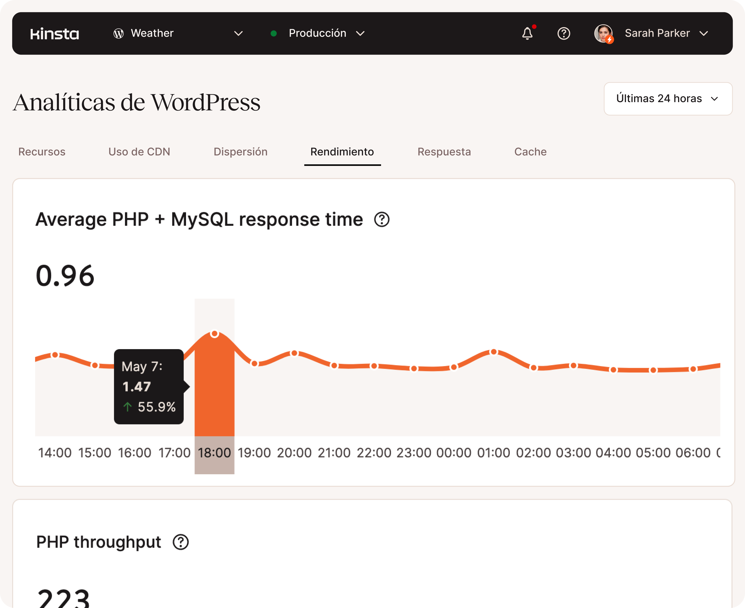 MyKinsta es el centro de control de tu red. Rastrea el tráfico, genera certificados SSL, configura los ajustes de velocidad y seguridad, y mucho más. Consigue todas las herramientas que necesitas en un solo sitio. El panel de control MyKinsta está disponible en español.