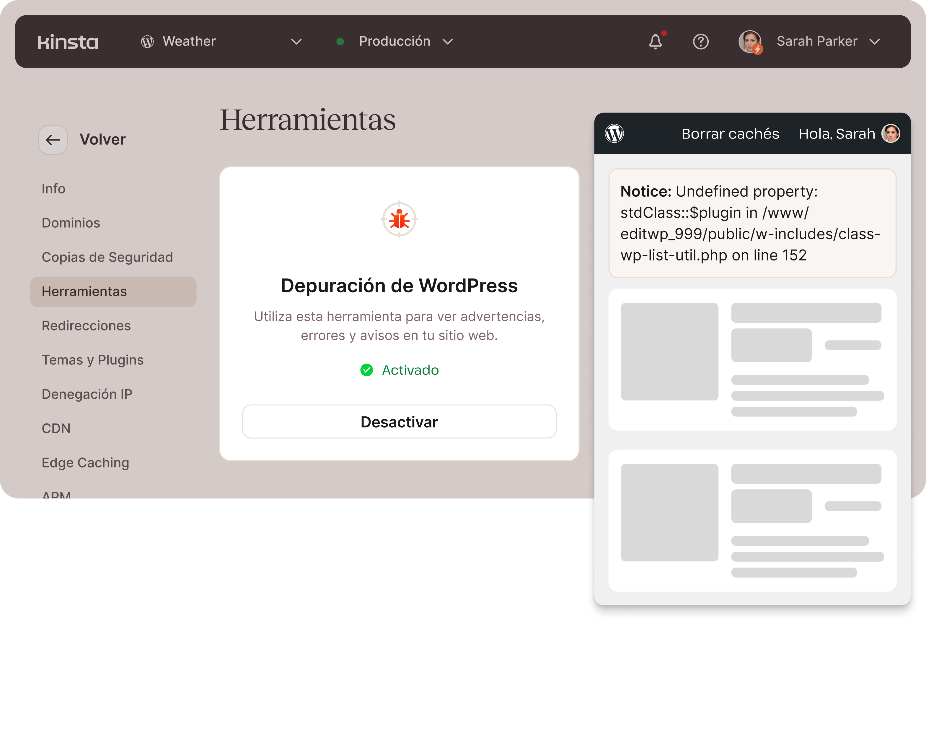 Administra tu sitio fácilmente con MyKinsta y DevKinsta — diseñados para ofrecerte la mejor experiencia en español.