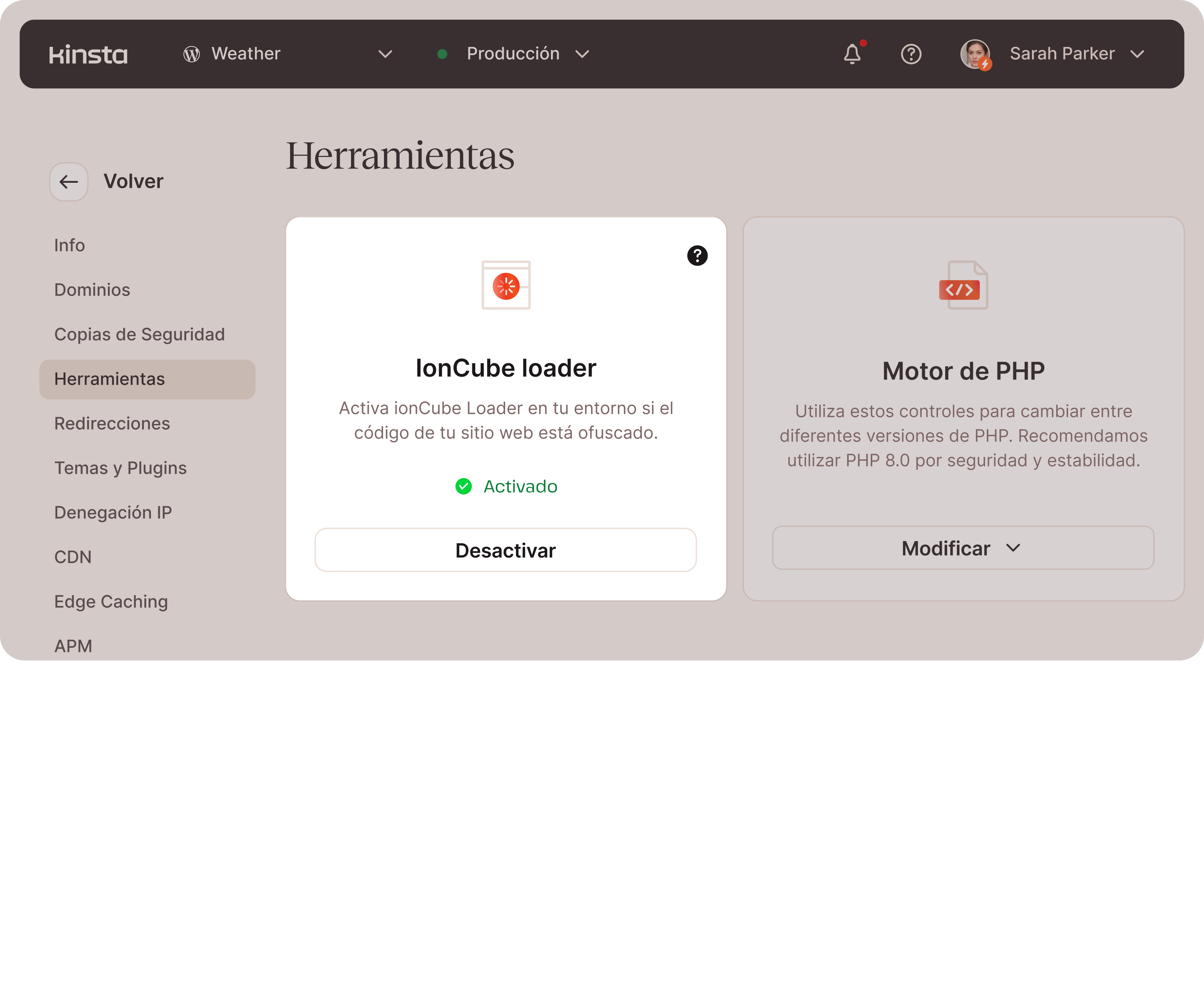 Agiliza la gestión de tu sitio con todas las funcionalidades y herramientas a las que tienes acceso a través de MyKinsta, nuestro galardonado panel de control personalizado.