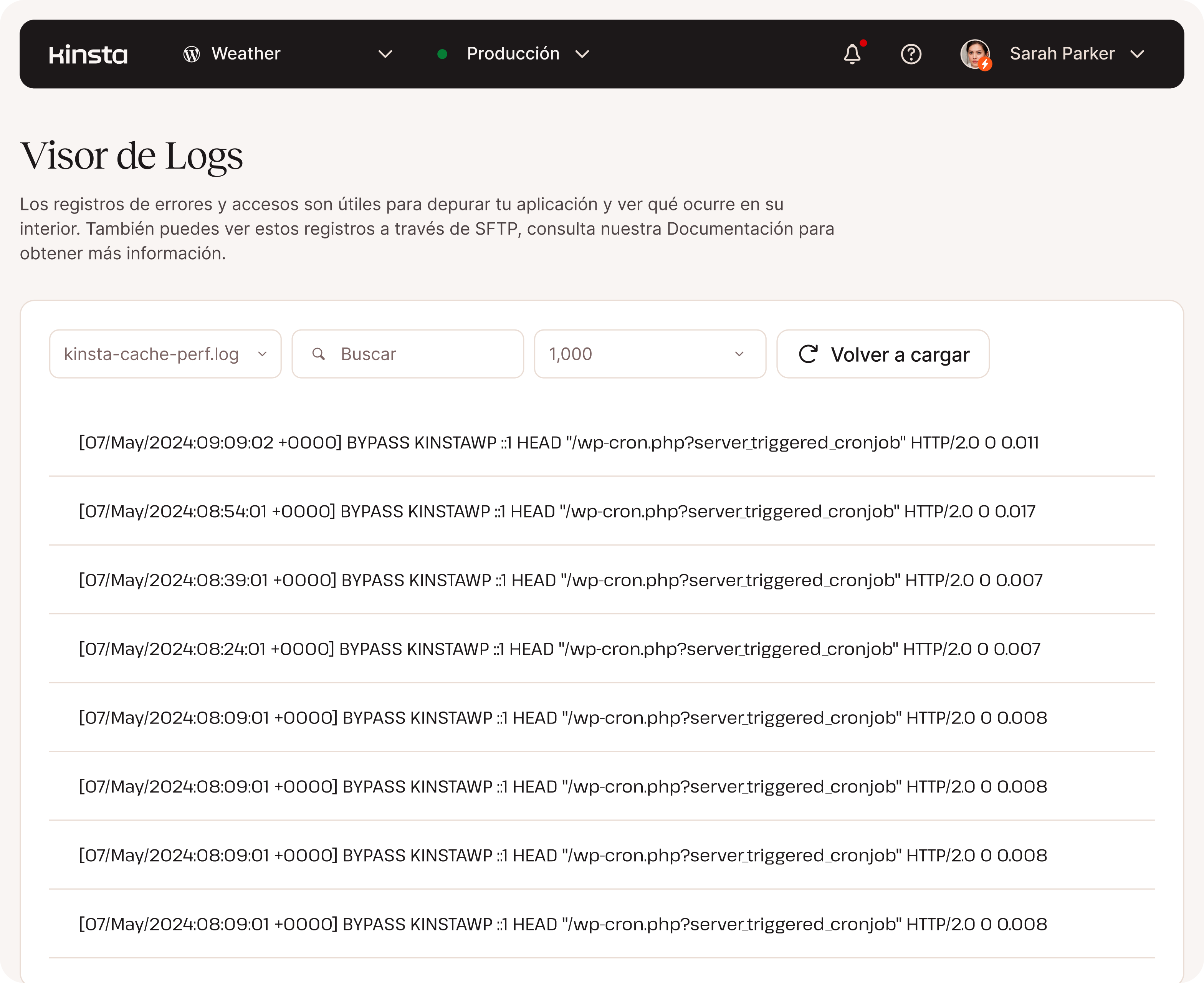 - Registros de errores, registros de caché y registros de acceso en los que se pueden realizar búsquedas