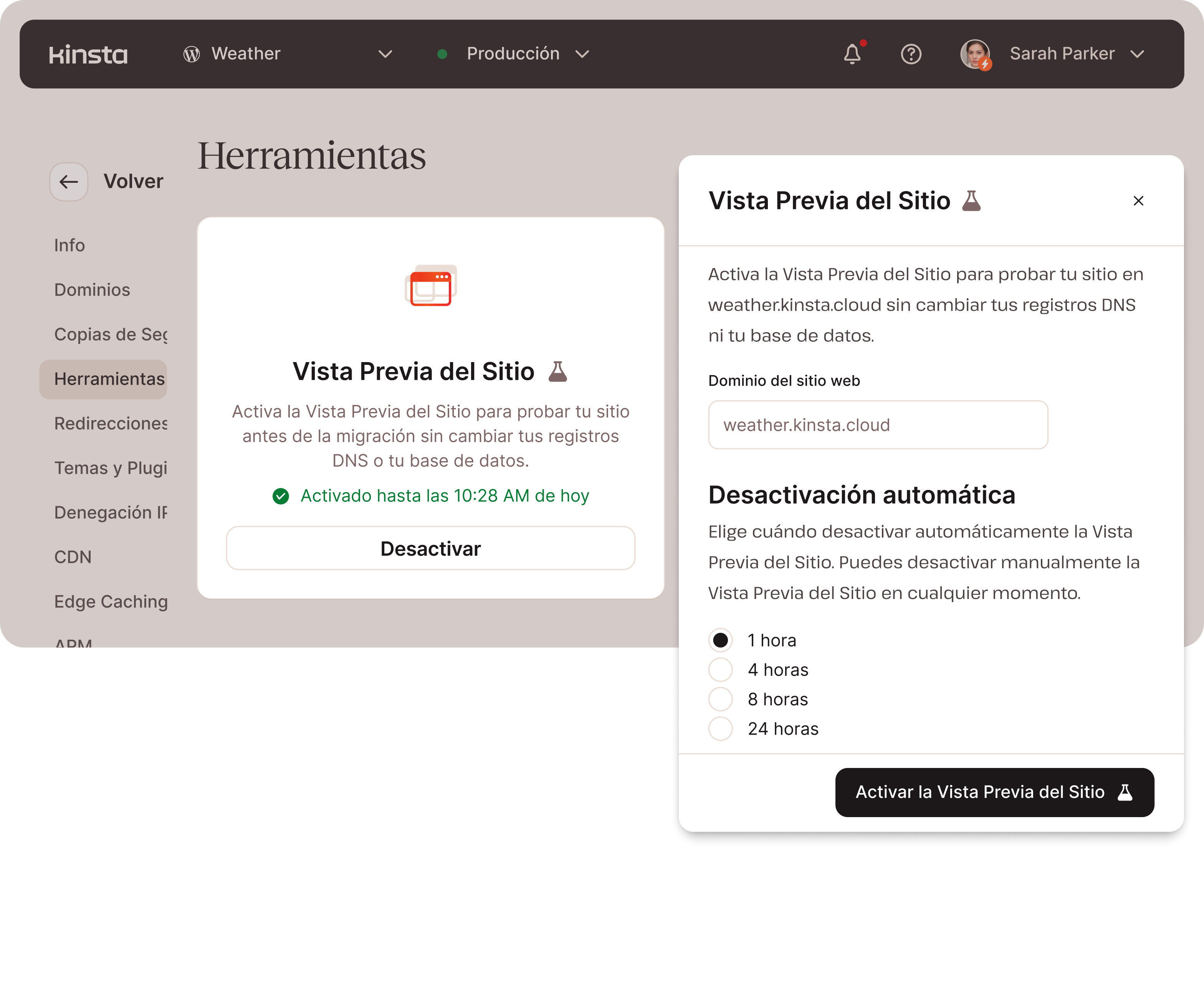 - Herramienta de Vista Previa del Sitio para probar sitios sin actualizar los DNS