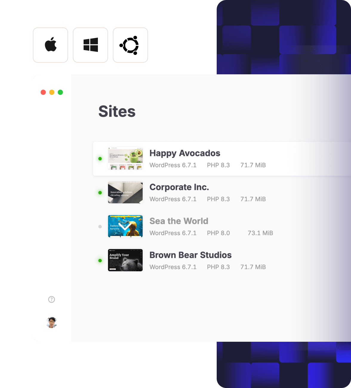 Manage your WordPress sites, databases, and even your applications in one place.