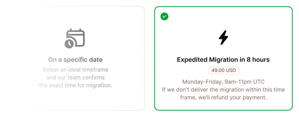 Fast-track your migration request with our Expedited Migration option. Choose it directly in MyKinsta… it’s so convenient!