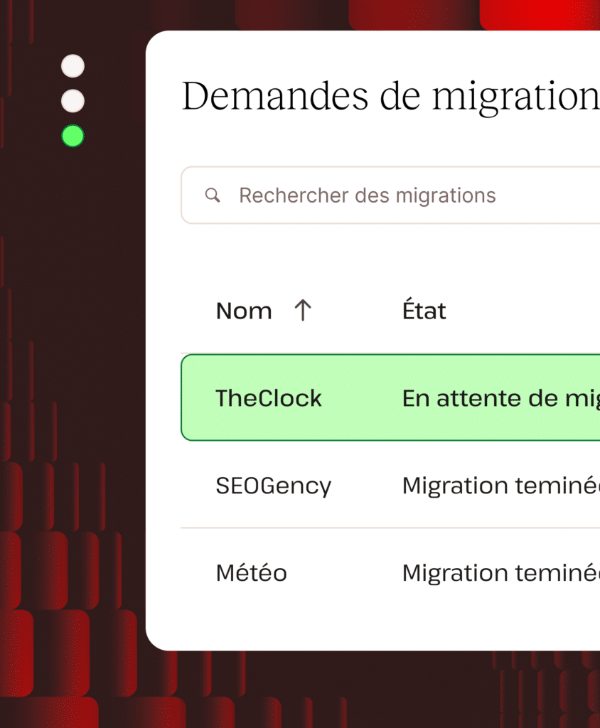 Il vous suffit de fournir quelques détails, tels que votre centre de données préféré (par exemple, celui de Paris !) et de planifier la migration, puis d’envoyer votre demande de migration. Profitez d’une suite complète de fonctionnalités puissantes de gestion de site conçues pour vous faire gagner du temps et de l’argent.