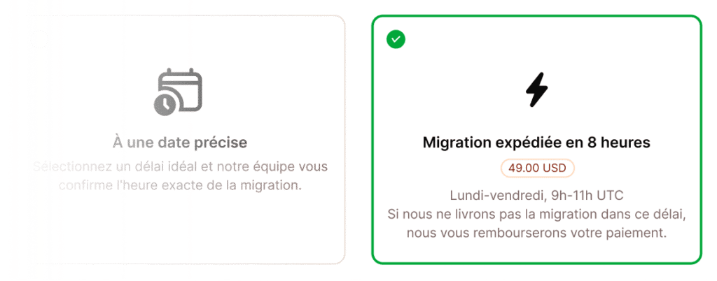 Vous êtes pressé ? Inscrivez-vous maintenant et obtenez la migration de votre site en 8 heures !