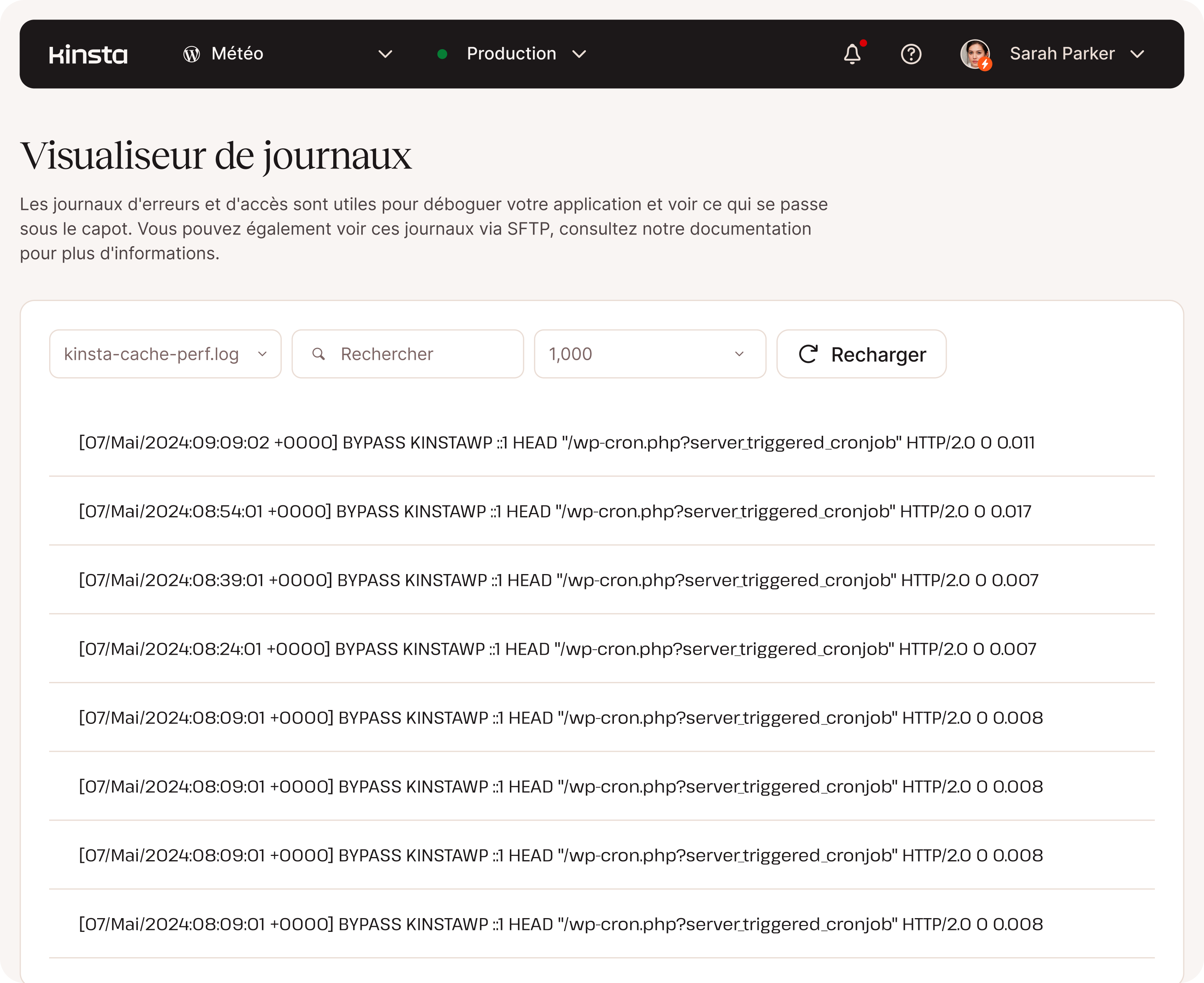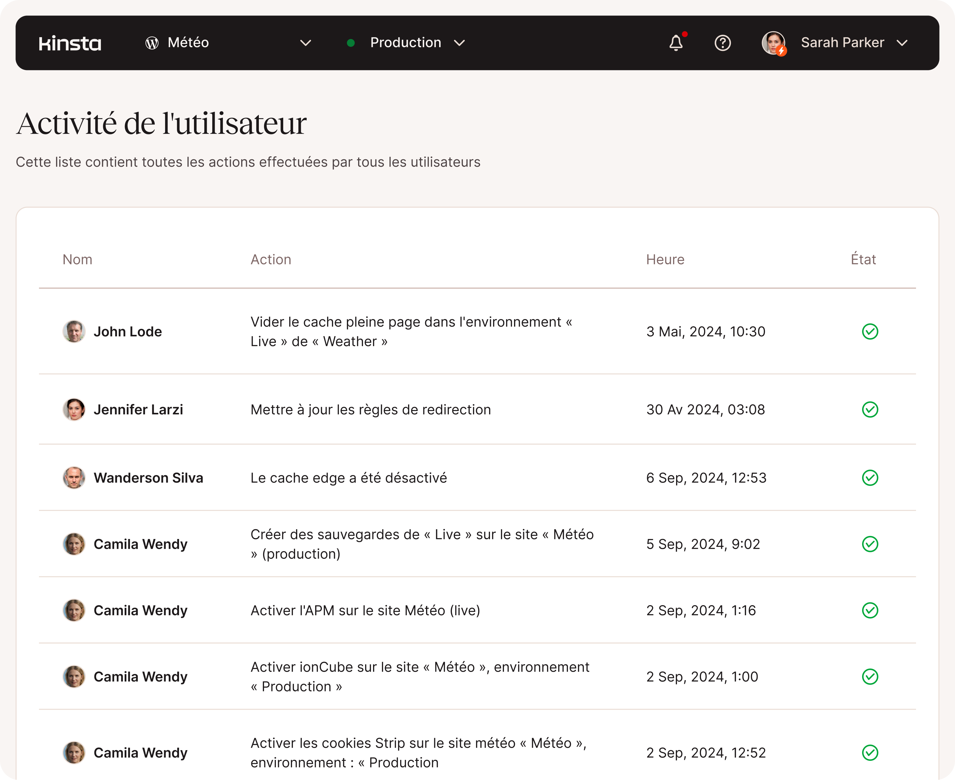 - Journaux d'activité des utilisateurs de MyKinsta