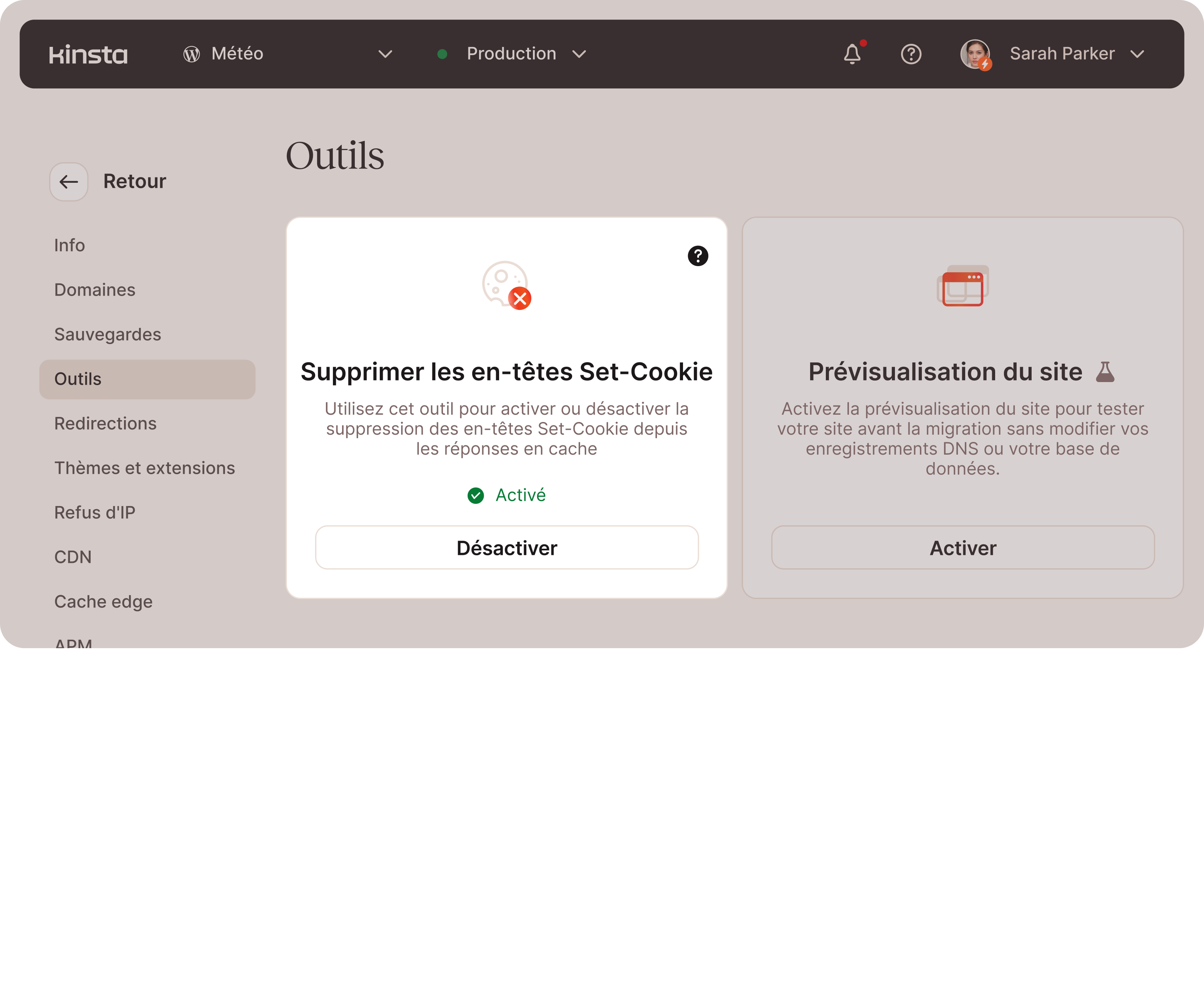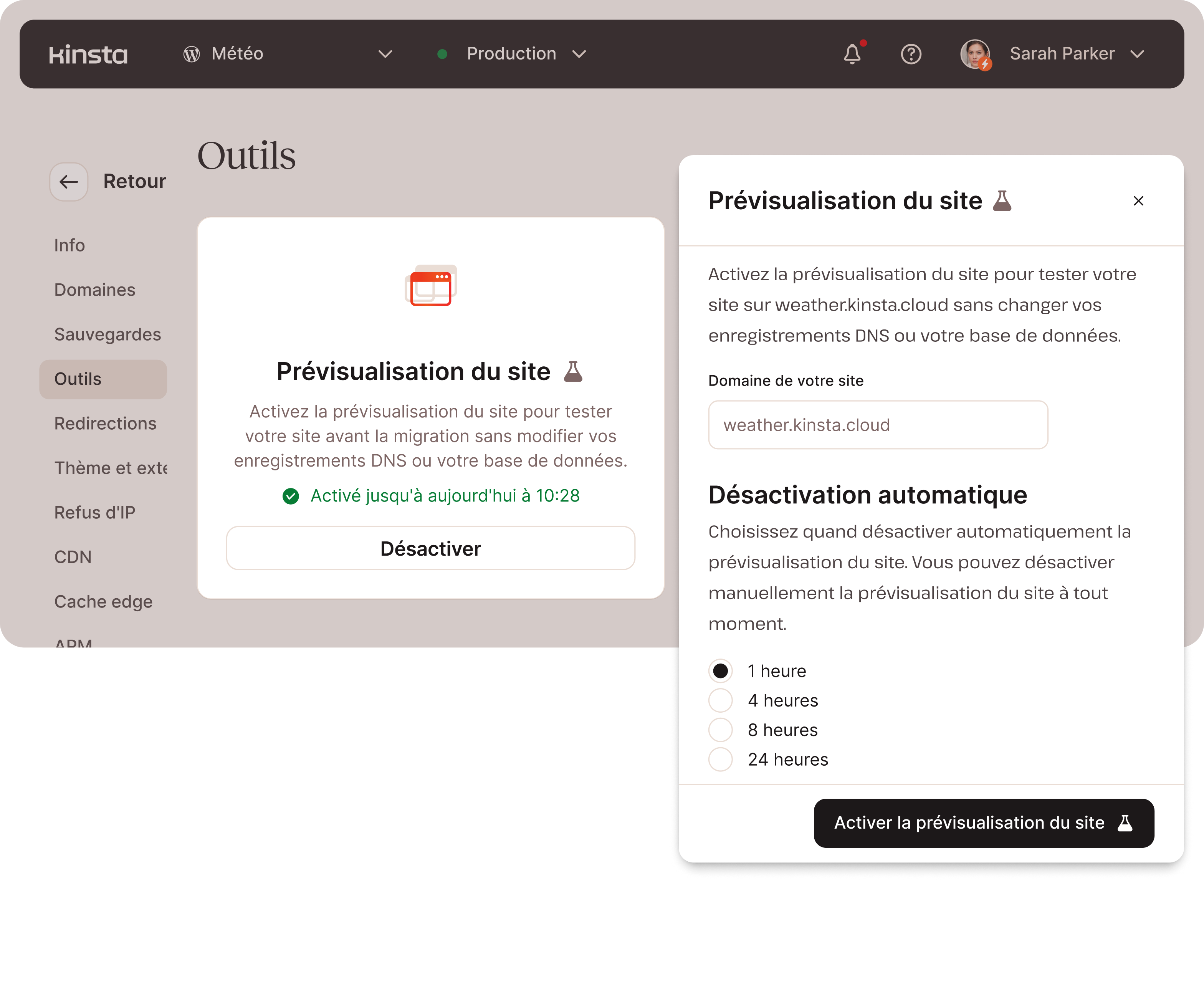 - Outil de prévisualisation du site pour tester les sites sans mettre à jour le DNS