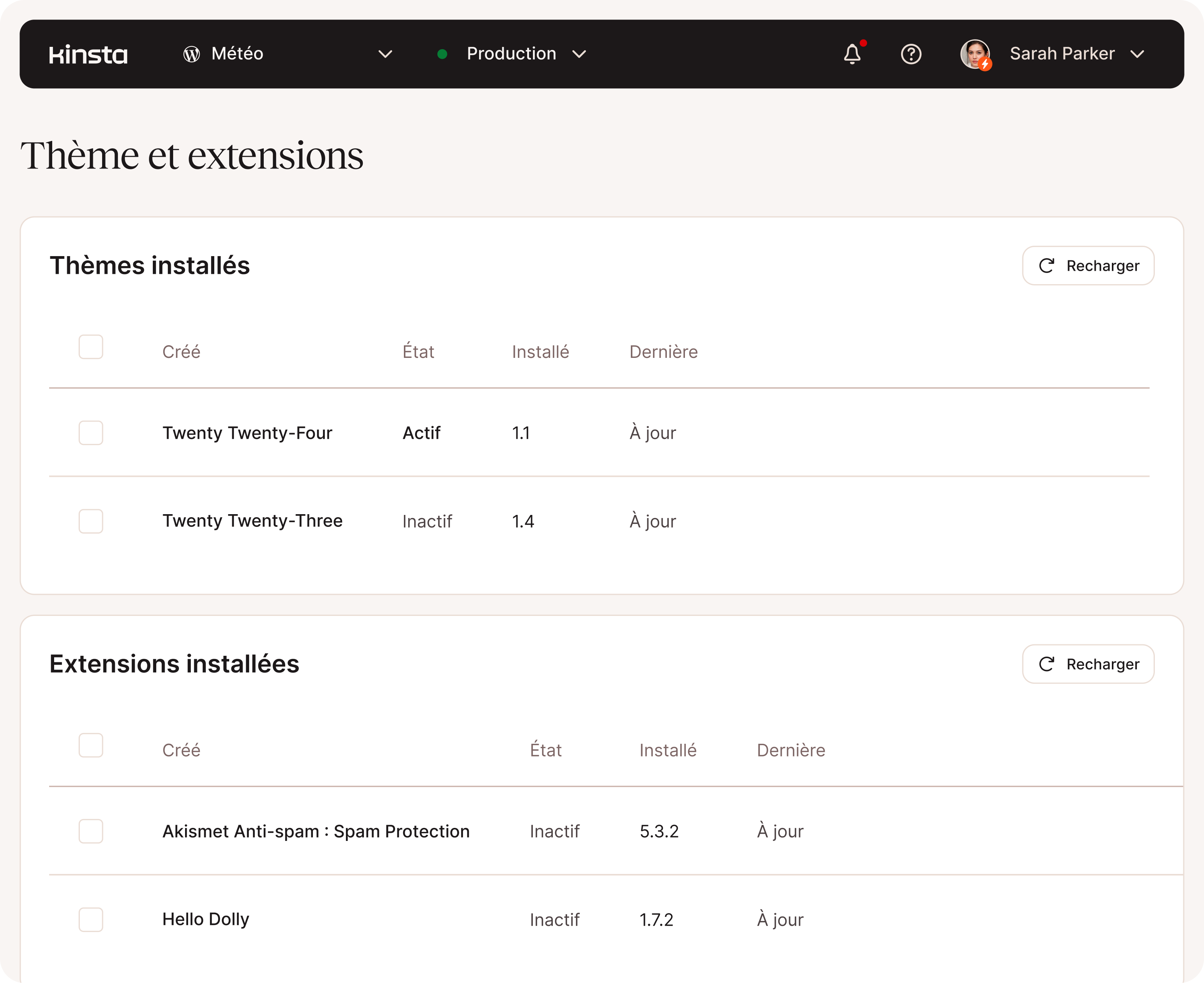 - Mettre à jour les extensions/thèmes sans quitter MyKinsta