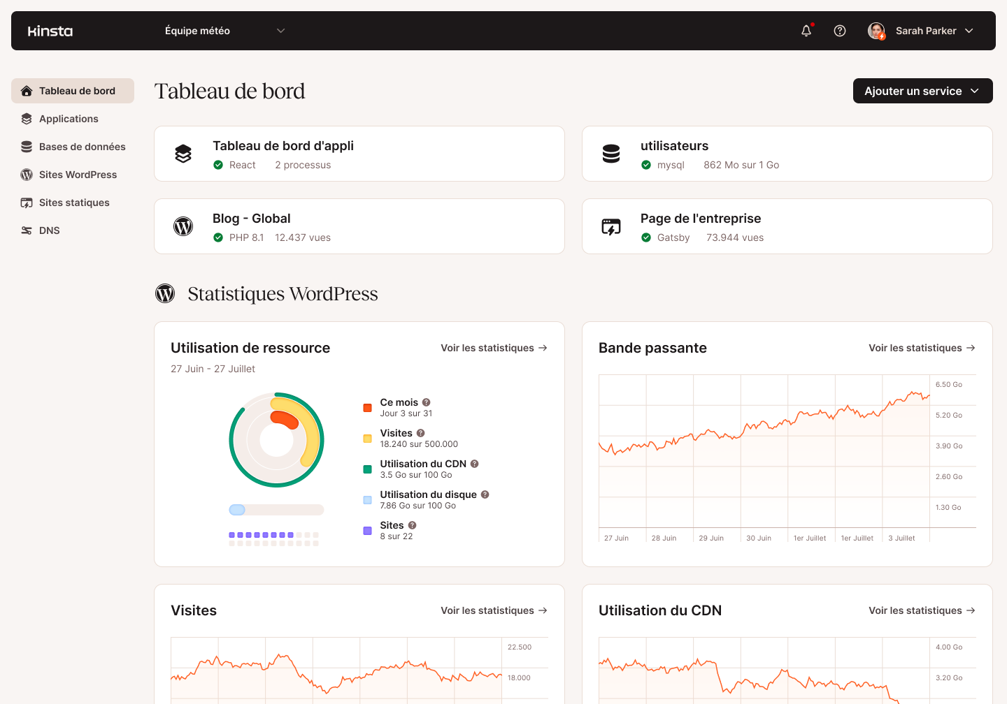 Gérez vos sites WordPress, vos bases de données et même vos applications en un seul endroit. MyKinsta est disponible en français et contient des outils de gestion de site avancés.