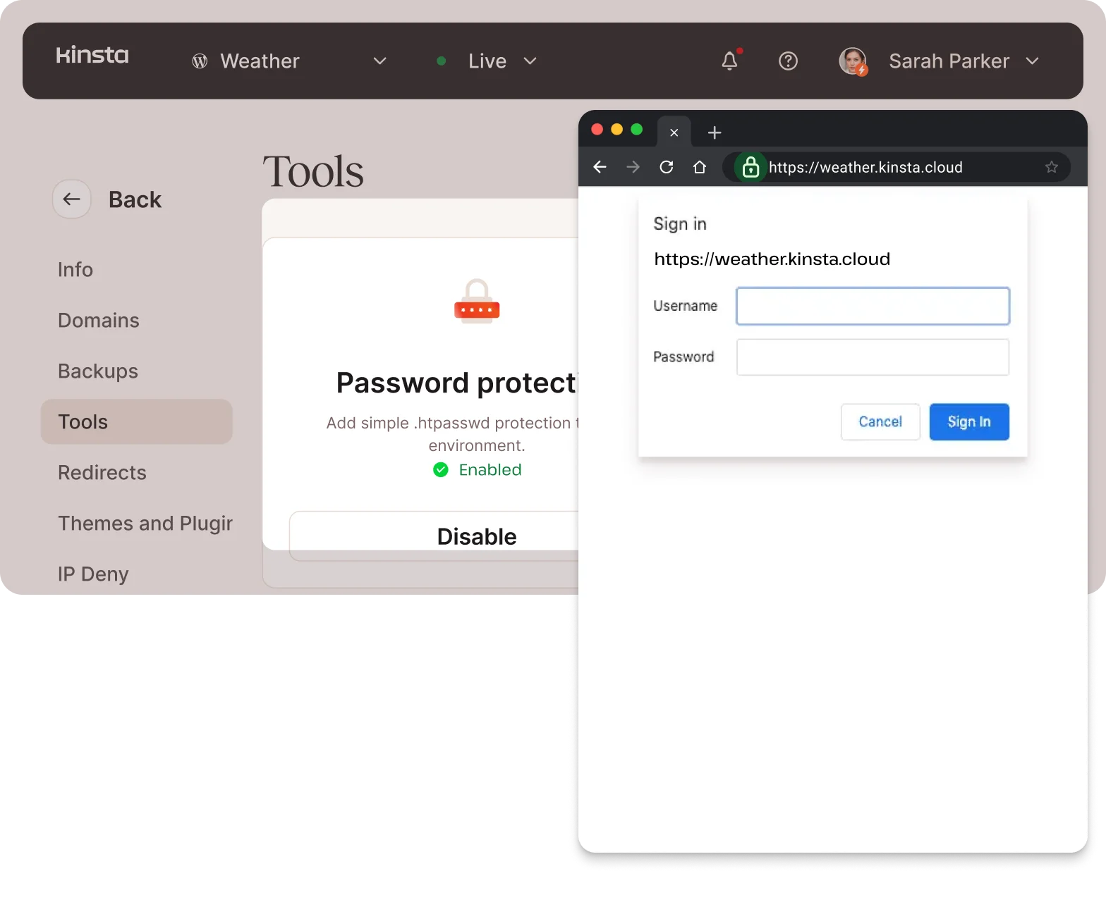 - Easily enable password protection (.htpasswd)