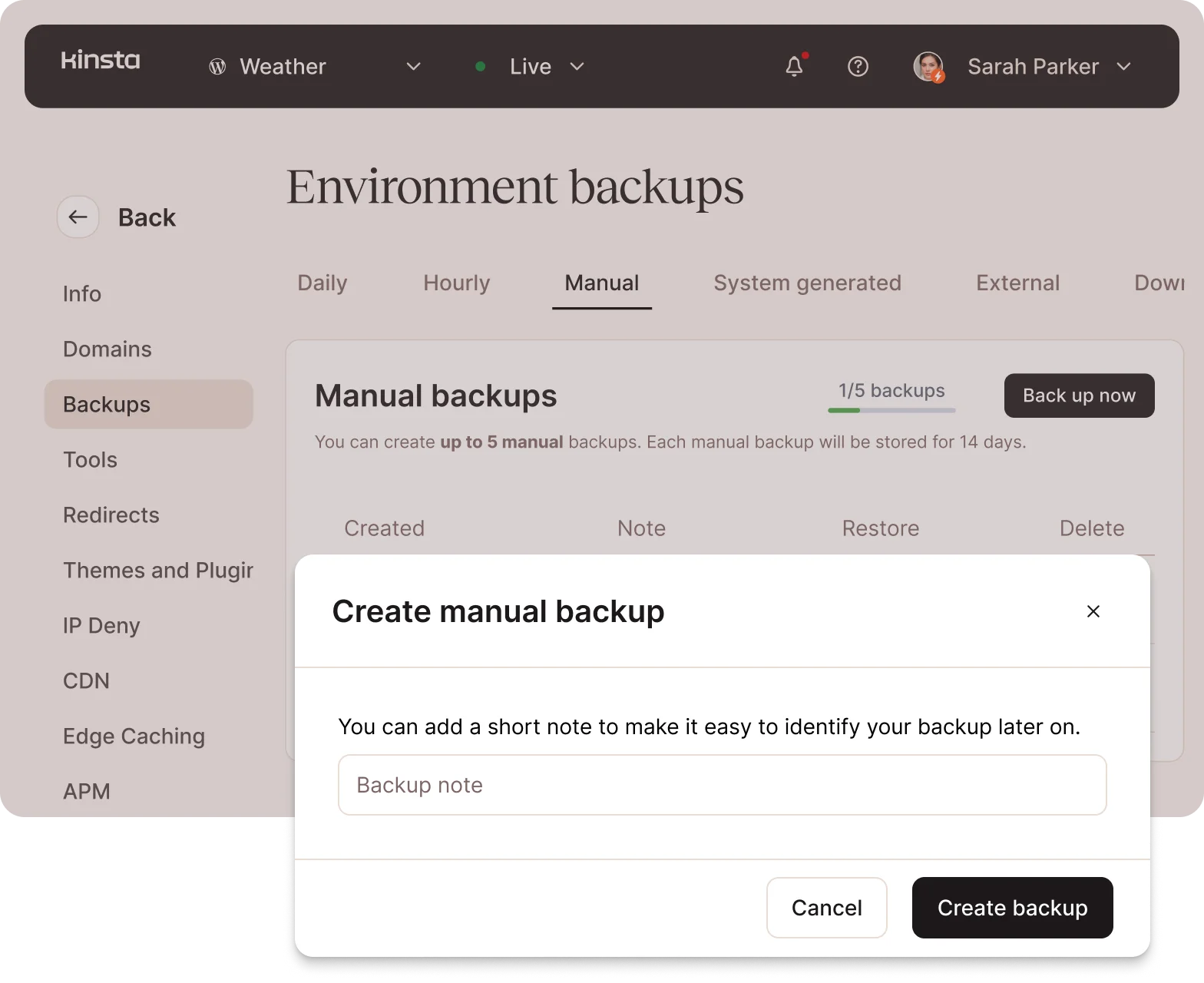 With our MyKinsta dashboard, you can create new sites, manage domains and DNS, access backups, and analyze site traffic, bandwidth usage, performance metrics, and more.