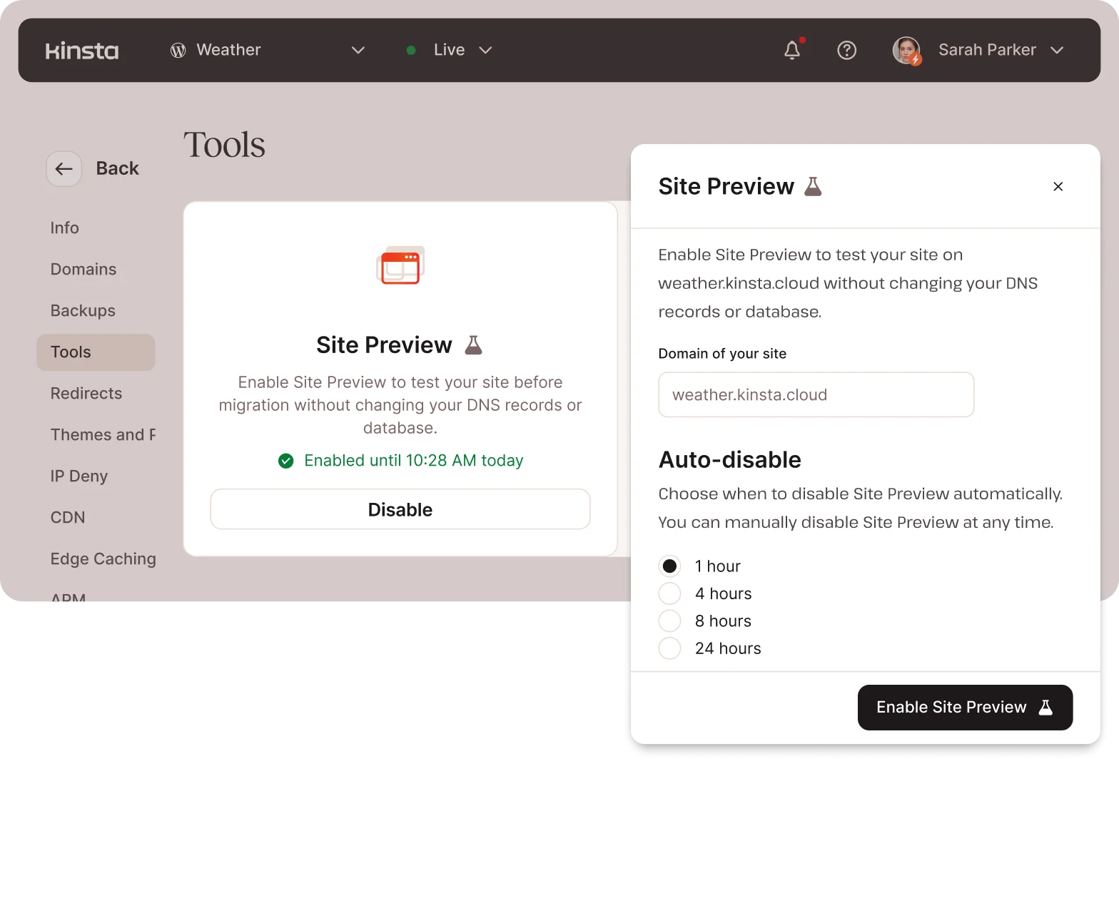 - Site Preview tool to test sites without updating DNS