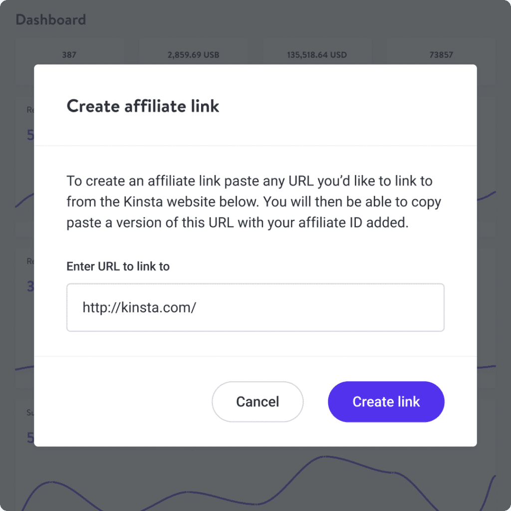 Create your unique affiliate link with a single click and point it anywhere on the Kinsta website. See how your links perform and then optimize based on what converts best.