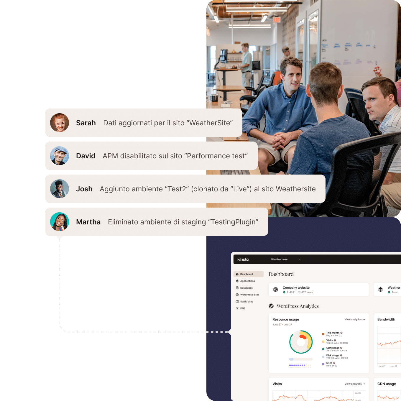 Riduci il tempo dedicato alla manutenzione e alla gestione e concentrati sullo sviluppo di nuove esperienze per i tuoi clienti grazie ai nostri sistemi automatizzati. Migra gratuitamente tutti i siti web dei tuoi clienti. Il nostro team di esperti di migrazioni di WordPress si farà carico di tutto il lavoro pesante. Scopri in che modo il nostro Hosting WordPress per agenzie può farti risparmiare tempo e denaro!