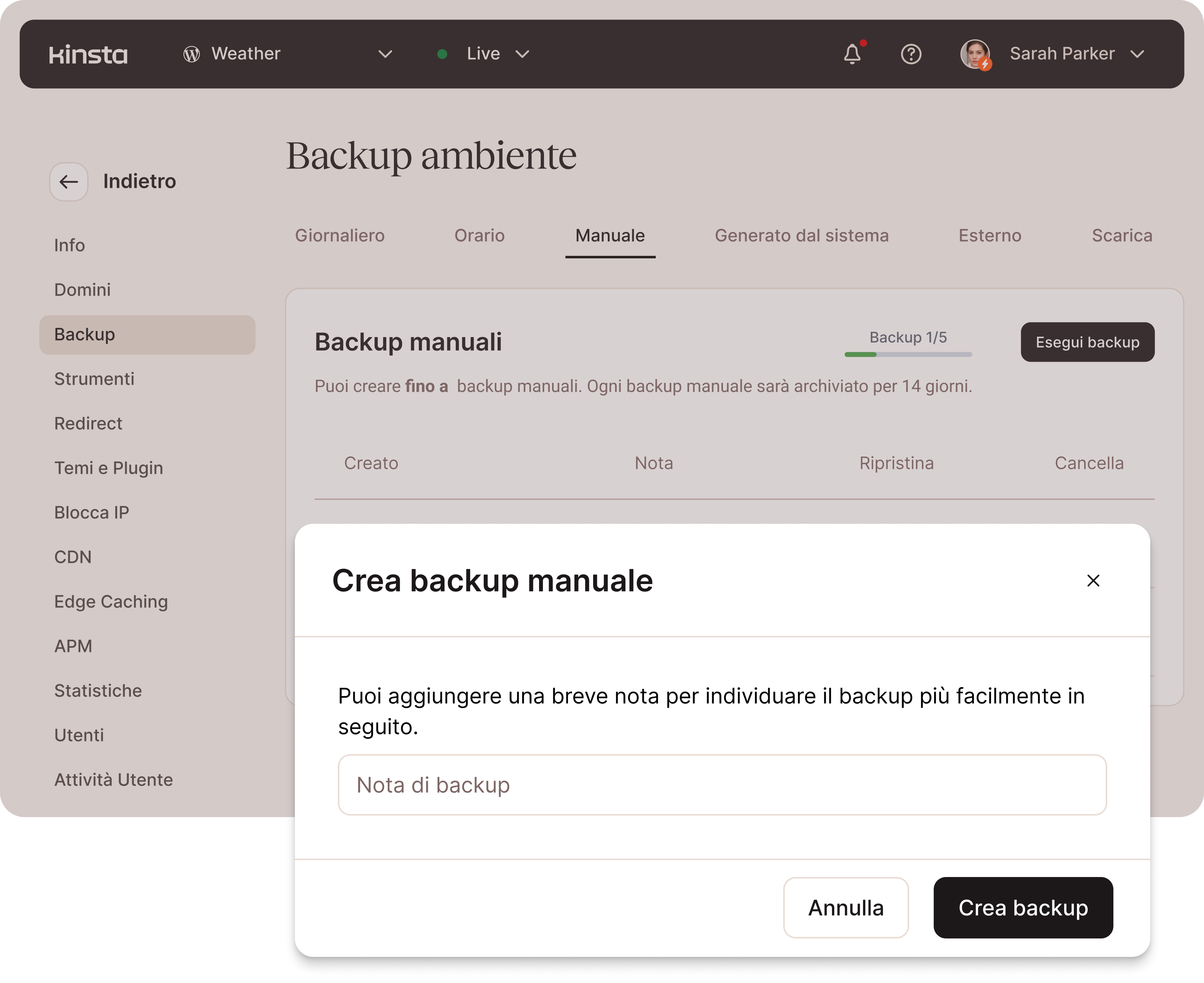 - Creazione e ripristino dei backup con un solo clic